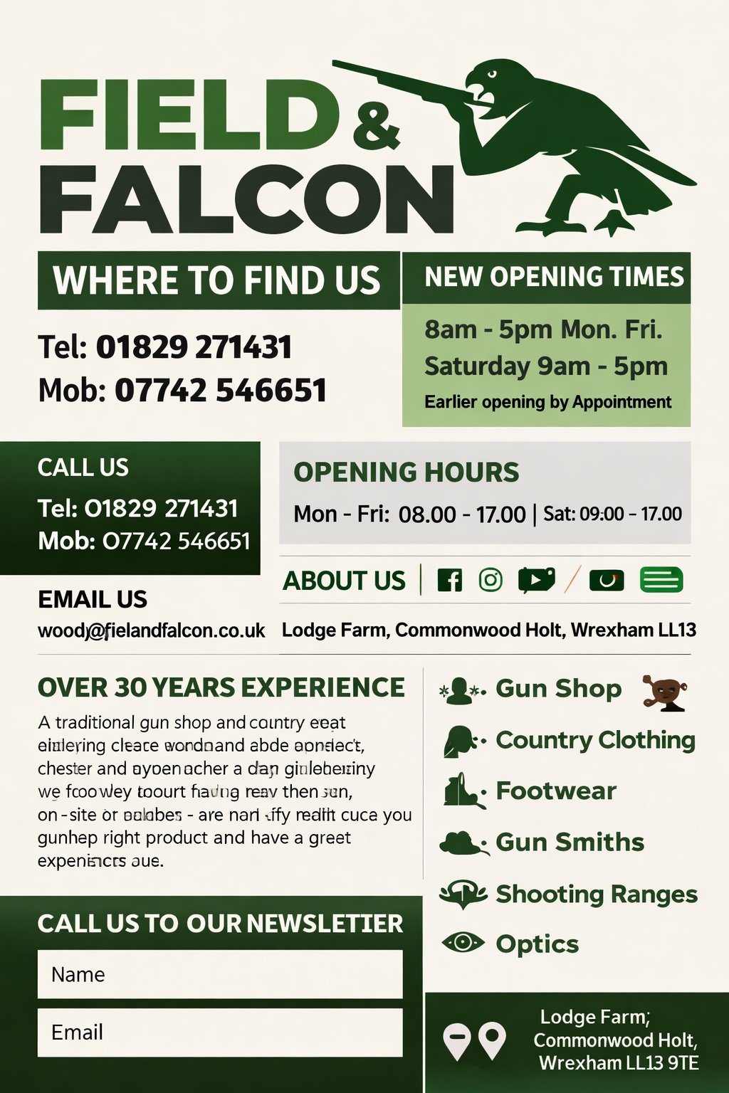 For over 30 years, Field and Falcon has operated with a simple yet powerful philosophy: “Try it on, try it out.” Whether you are in the market for a new shotgun, a precision air rifle, or a pair of rugged wellies, the ability to test the weight, feel the balance, and check the fit is indispensable. Located between Chester and Wrexham, the shop takes full advantage of its vast acreage, offering both indoor and outdoor shooting ranges where customers can truly get a feel for their equipment before making a commitment.